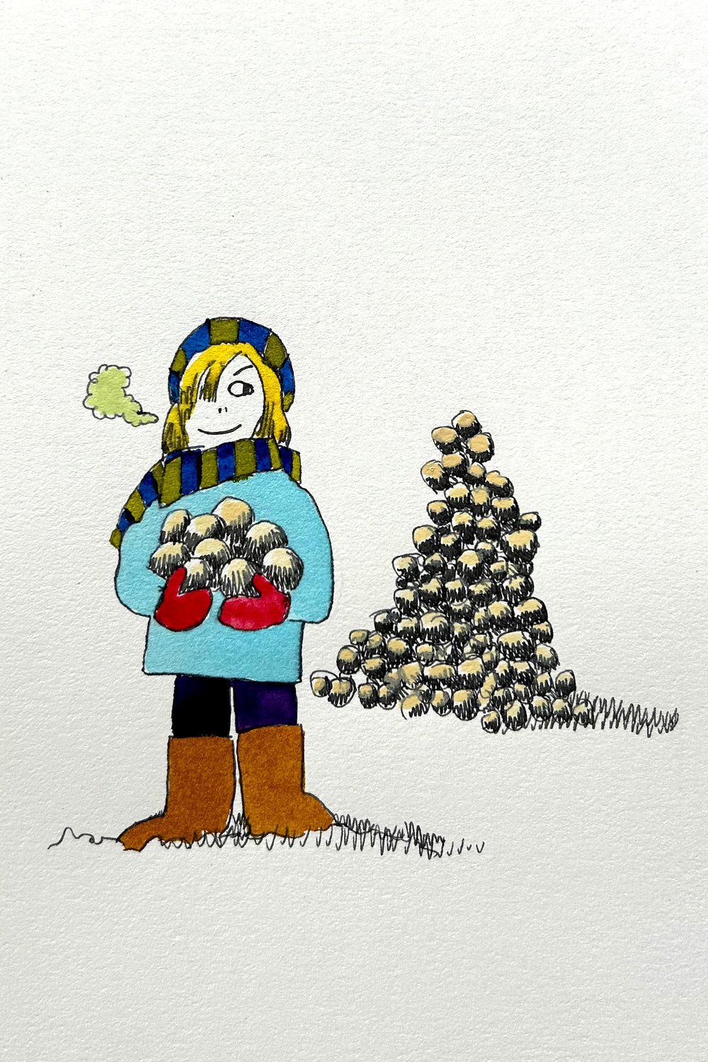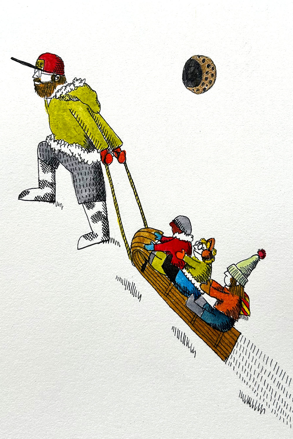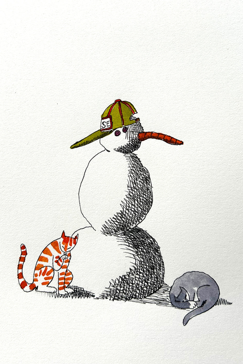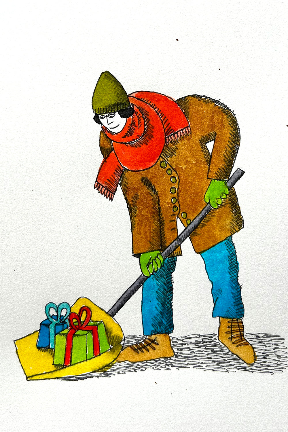 Discover the unique art collection by Colin Smith at Tuck Studio. Alongside a 20-year-long career teaching high school art, theatre, and English, Colin has cultivated an impressive art practice of his own. He began by drawing cartoons, notably carrying out a weekly publication in the Telegraph Journal from 2007 to 2017. His current focus is on large, whimsical pen and ink drawings created with metal tip dip pens, giving his work a unique, expressive style. Colin works from his studio in the River Art Centre, Florenceville-Bristol, New Brunswick.