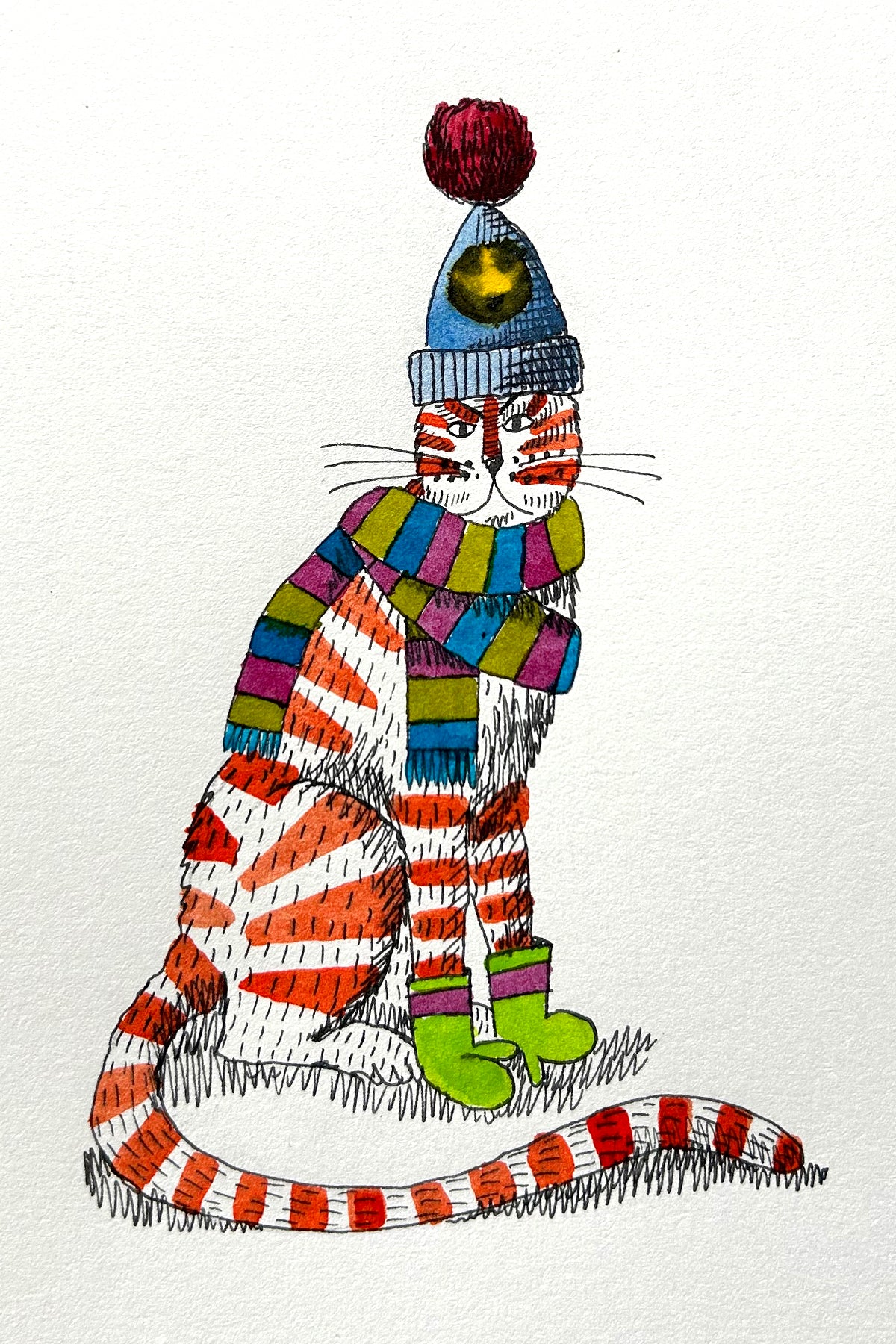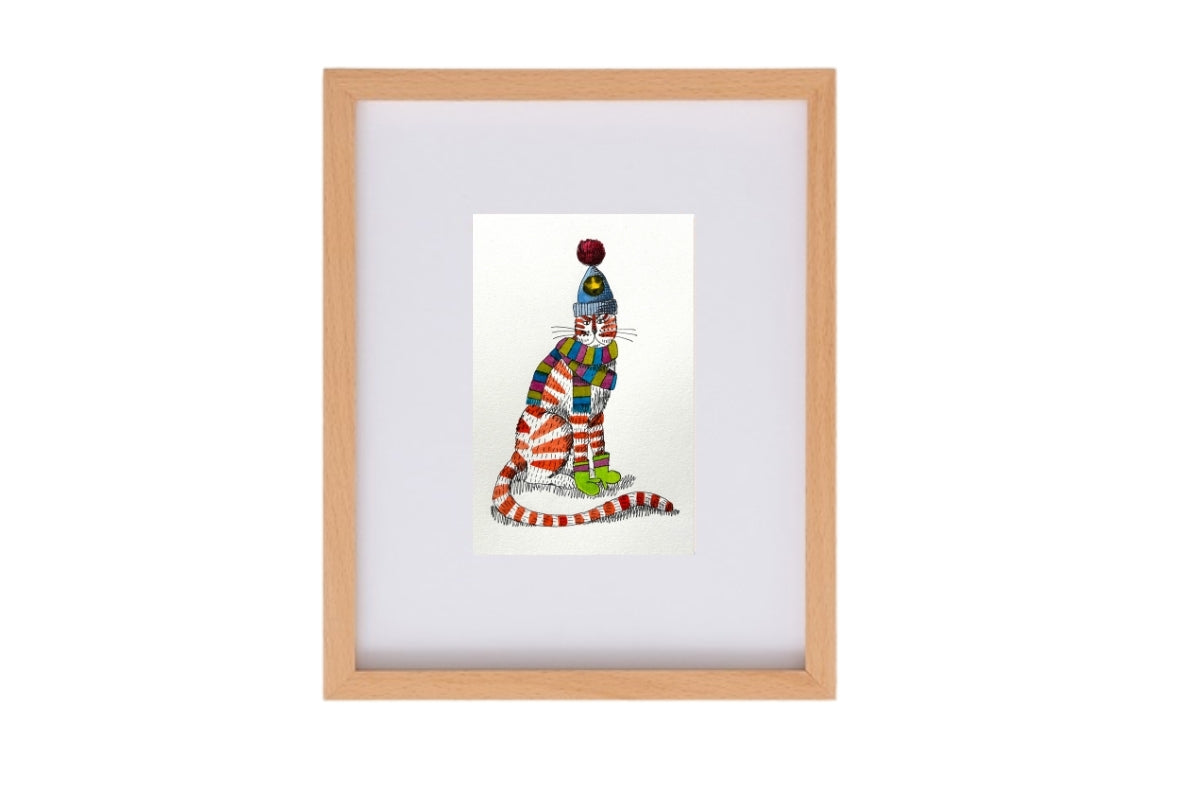 Original ink-on-paper artwork by Colin Smith. The piece captures a charming moment, brought to life through Colin's signature bold lines and intricate details. The artwork is framed in an 8" x 10" beech frame behind a 4" x 6" mat, adding elegance to any space. Experience Colin's creative style that blends playfulness with intricate craftsmanship.