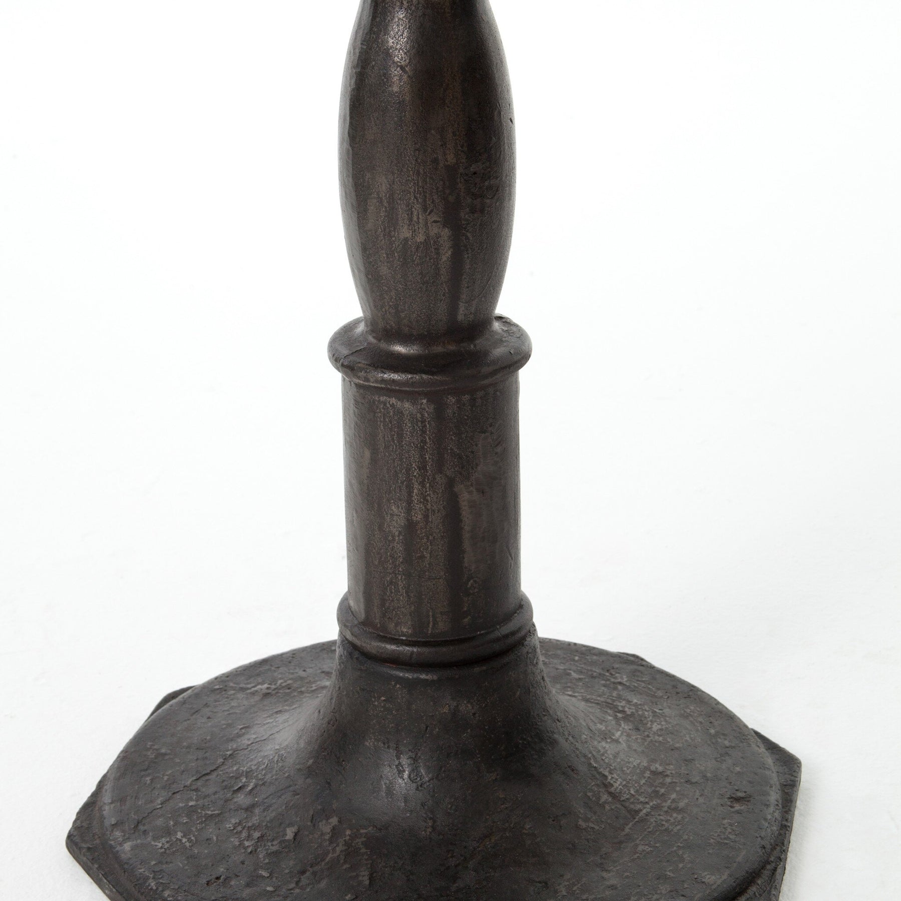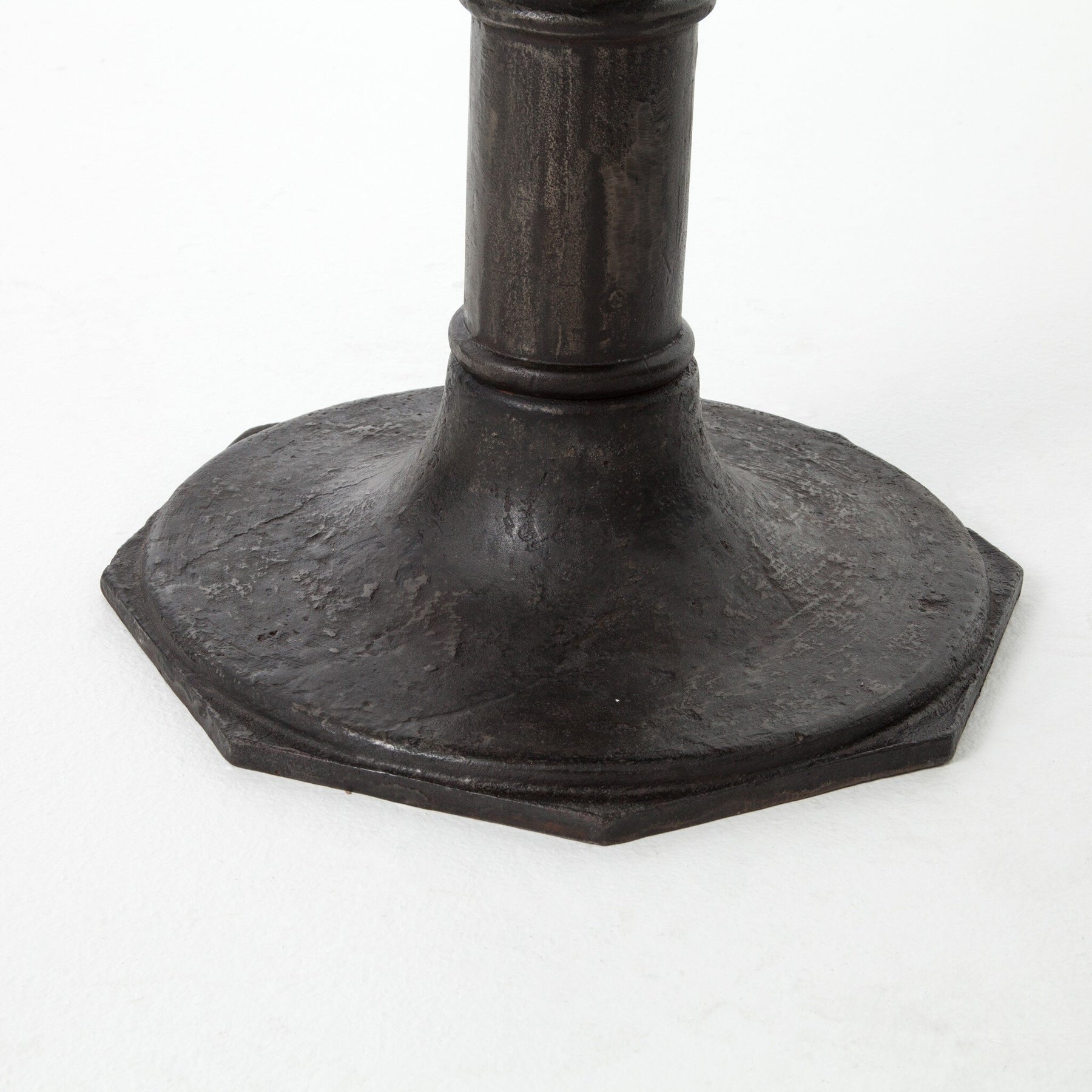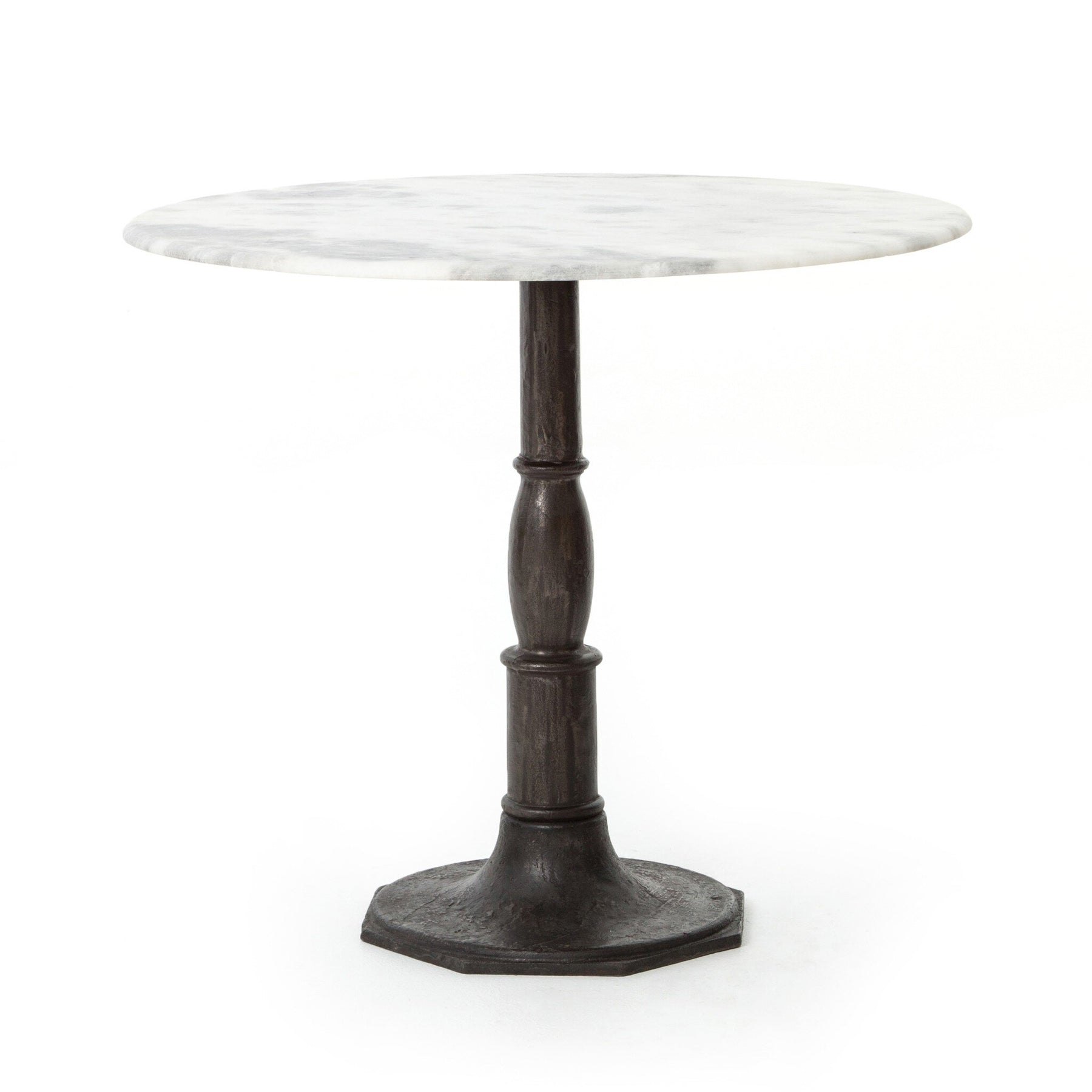 A modern take on a classic bistro table. Lucy has a marble top on top of an eight-sided cast iron pedestal.