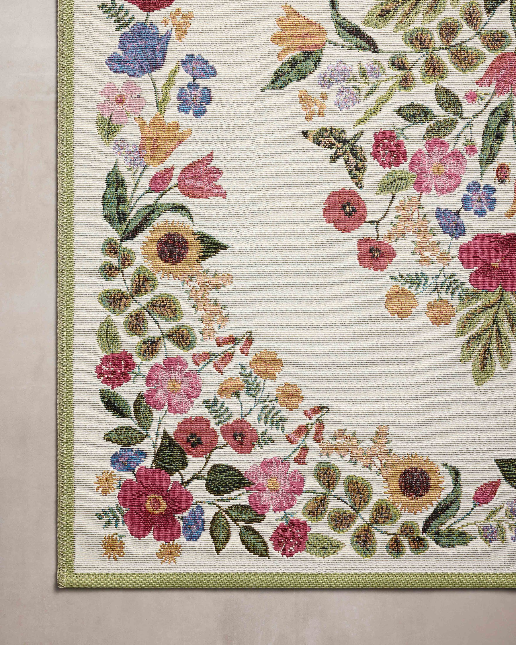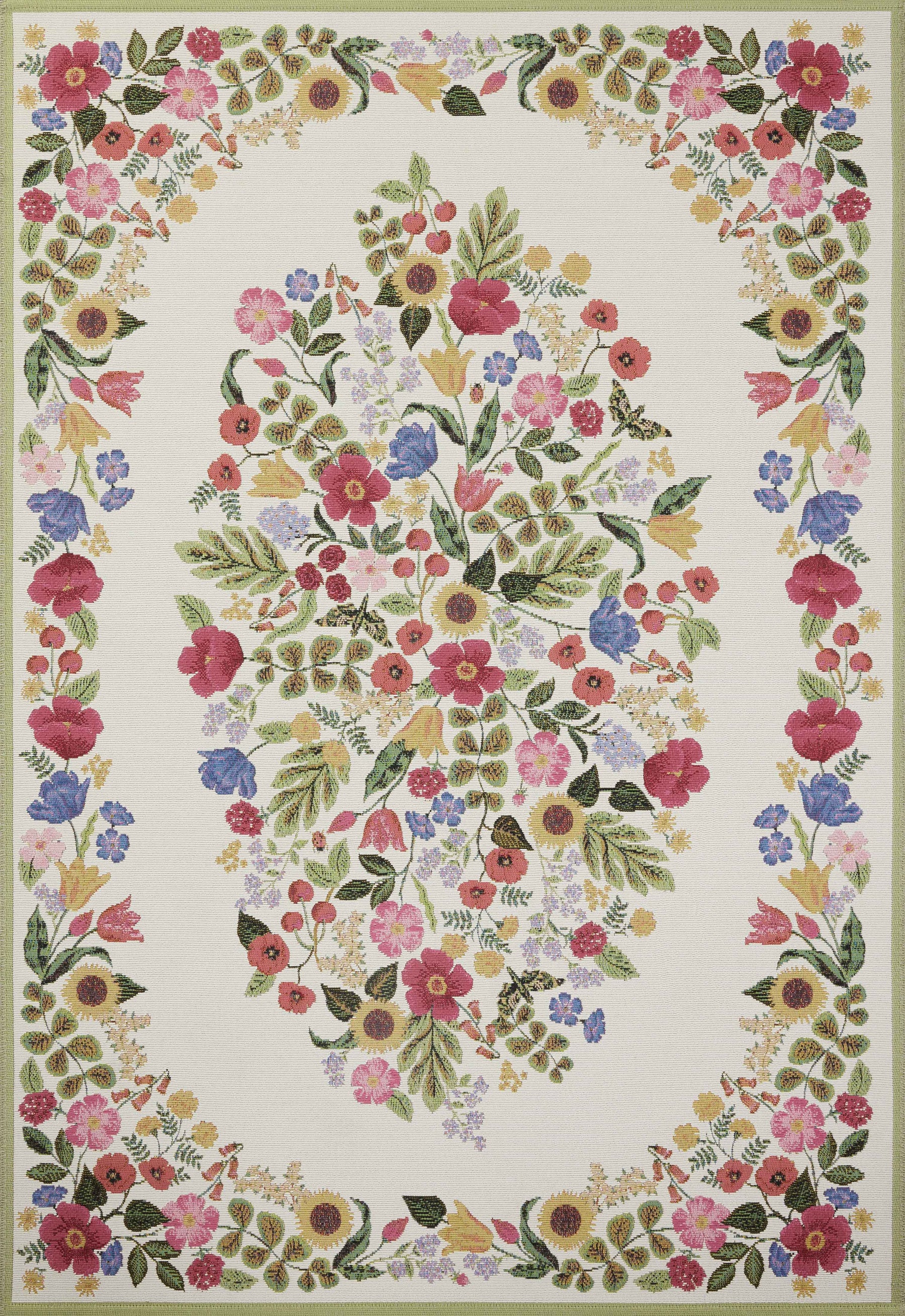 The Perennial Collection is the first outdoor area rug from Rifle Paper Co. x Loloi. Signature florals in bold, vibrant palettes make each rug a standout whether it’s styled indoors or out, on patios or in mudrooms, hallways, or playrooms. The rug is power-loomed of polypropylene and polyester for durability and weather resistance, simply hose off and air-dry when needed. Made in Egypt. This collection is Oeko-Tex® certified, ensuring its materials don't contain harmful substances.