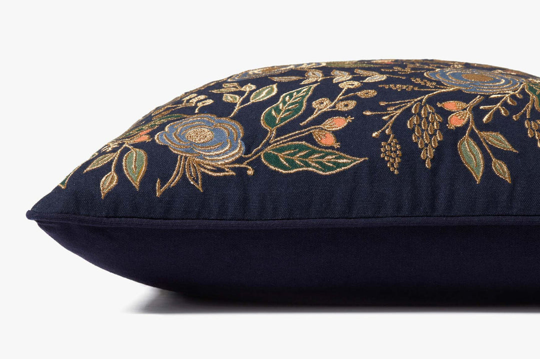 Add a touch of elegance to your home decor with the Collette Embroidered Cushion by Rifle Paper Co. × Loloi. This beautiful cushion features a charming floral design on a dark navy background, making it a perfect addition to any room. Upgrade your living space with this stylish and high-quality cushion.
