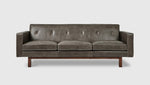 The Embassy Sofa is a classic mid-century design crafted with top grain, aniline-dyed leather and supported by a recessed solid-wood base.