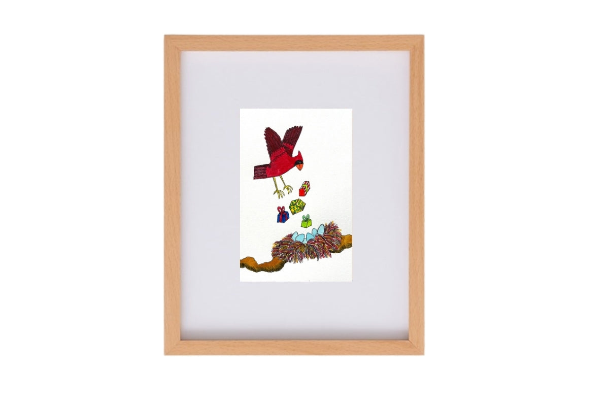 Original ink-on-paper artwork by Colin Smith. The piece captures a charming moment, brought to life through Colin's signature bold lines and intricate details. The artwork is framed in an 8" x 10" beech* frame behind a 4" x 6" mat, adding elegance to any space. Experience Colin's creative style that blends playfulness with intricate craftsmanship.
