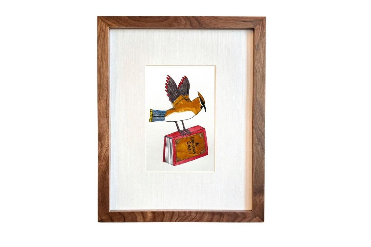 Original ink-on-paper artwork by Colin Smith. The piece captures a charming moment, brought to life through Colin's signature bold lines and intricate details. The artwork is framed in an 8" x 10" walnut frame behind a 4" x 6" mat, adding elegance to any space. Experience Colin's creative style that blends playfulness with intricate craftsmanship.