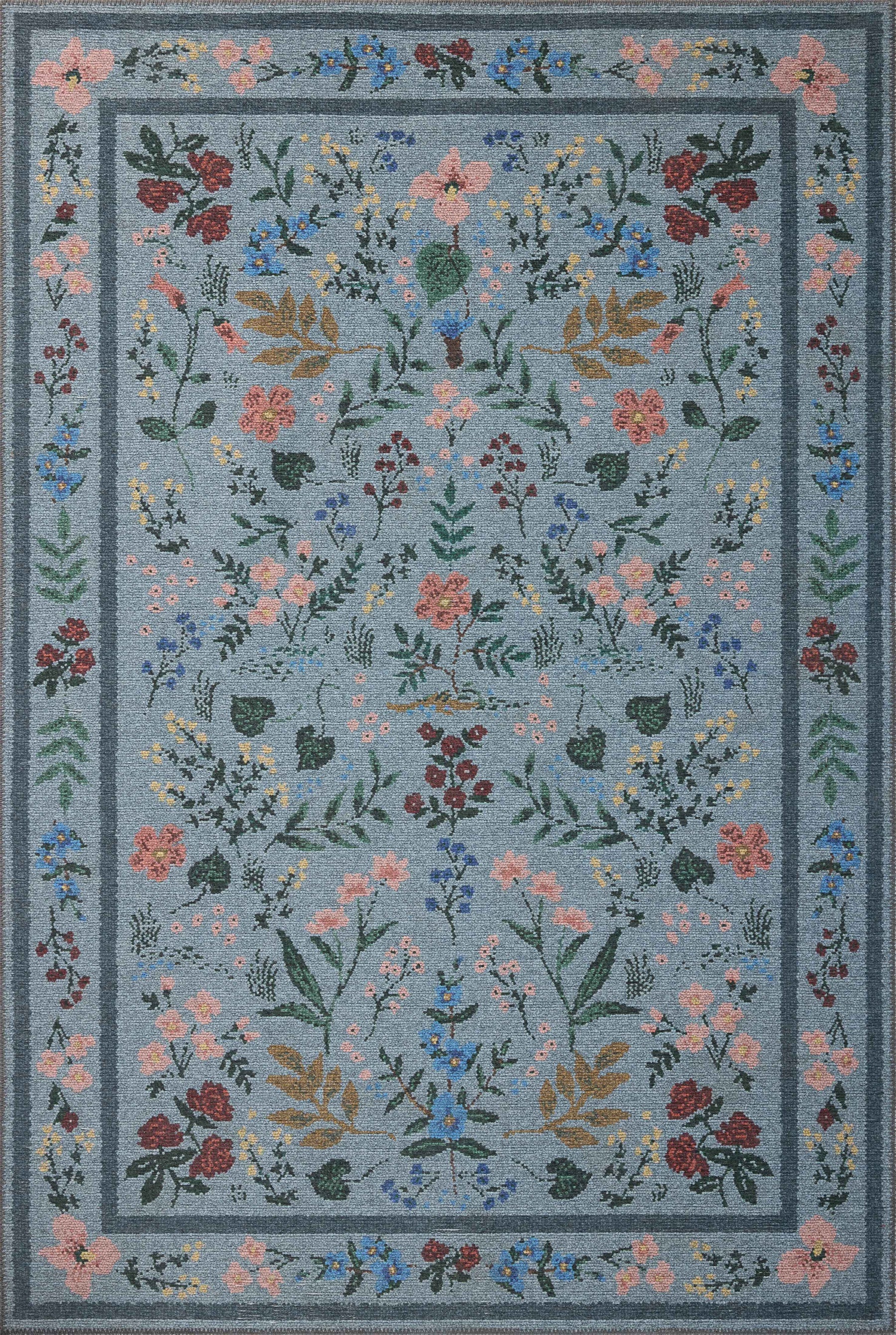 The Wildwood Collection is a floral area rug inspired by vintage needlepoint rugs, beautifully designed by Rifle Paper Co. x Loloi. The design features the signature botanicals and mirrored, intricate designs, of this lifestyle brand in sophisticated color palettes with a soft, gridded texture. This collection is power-loomed of 100 percent polyester in Turkey, a durable construction for living room rugs, bedroom rugs, entryway rugs, and more. Wildwood is OEKO-TEX certified, ensuring its materials do not contain harmful substances.